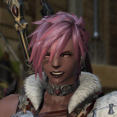 Standing at an intimidating 215.9cm, Fair is on the taller end of the feminine Roegadyn bell curve.Happy to show off her prowess in feats of strength, challenge her to an arm wrestle or a bicep show.She is known to offer the Lalafell who ask a ride on her fur-clad shoulder.Her sword is about as big as some are tall.